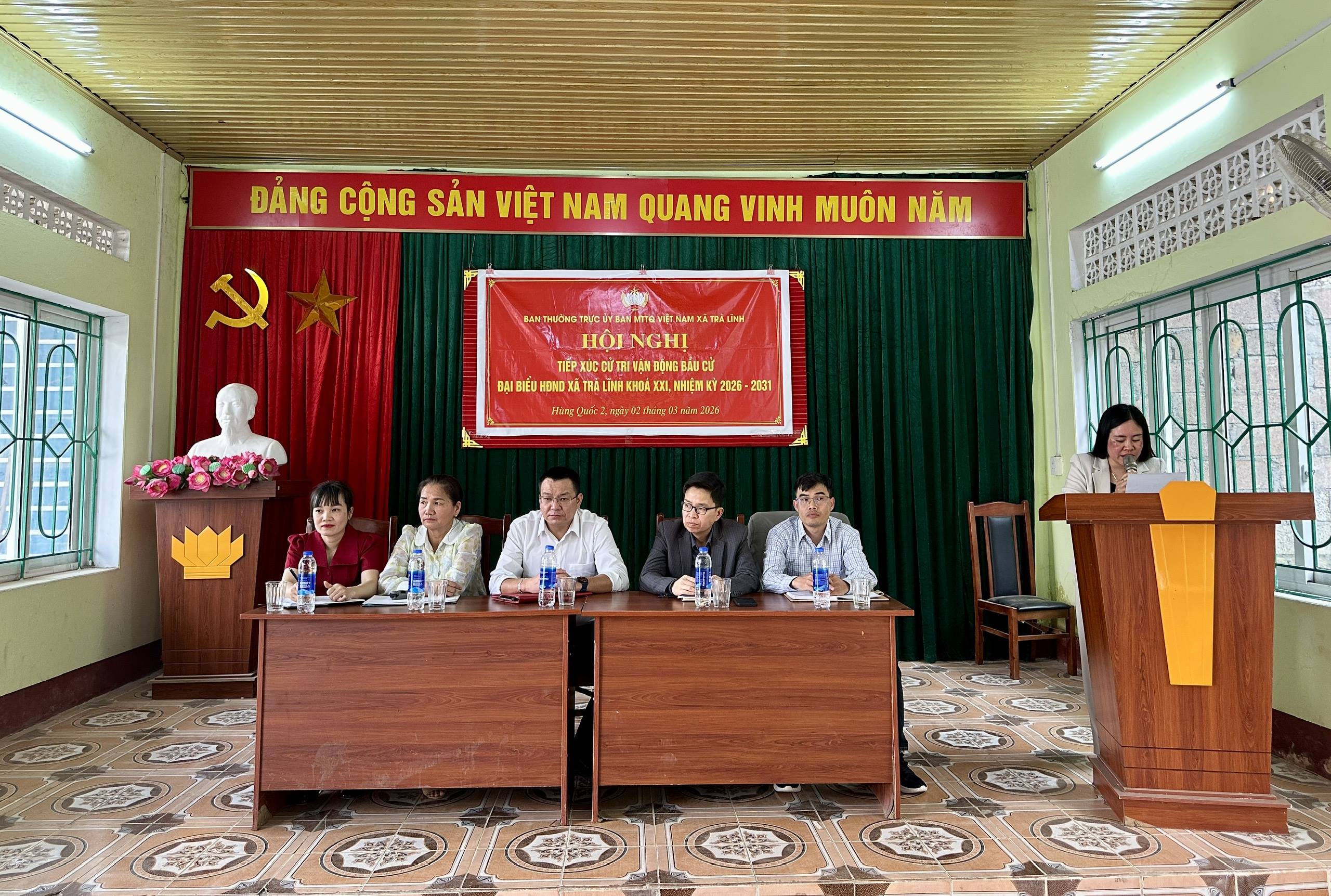 Ngày 4/3, Ban Thường trực Ủy ban MTTQ Việt Nam xã Trà Lĩnh tổ chức Hội nghị tiếp xúc cử tri, vận động bầu cử đại biểu HĐND tỉnh khóa XVIII, nhiệm...